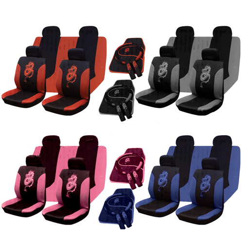 13PC UNIVERSAL FULL CAR SEAT COVER SET DRAGON STYLE GREY ...